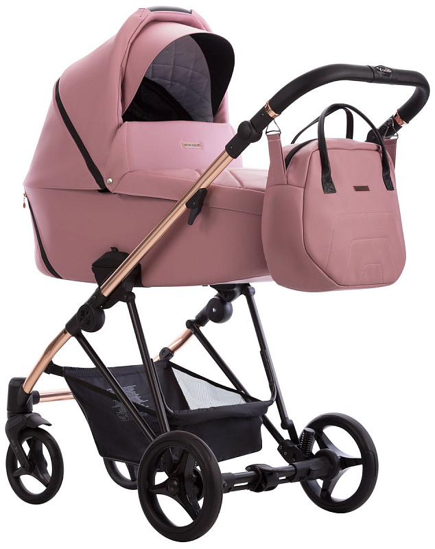 Детская коляска Bebetto Yoddi Premium Class 3 в 1 с автокреслом Avionaut Cosmo 05 розовая кожа рама бронза