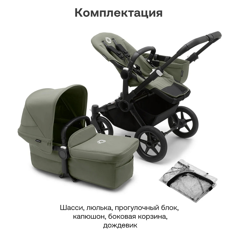 Коляска Bugaboo Donkey 5 Mono Complete 2 в 1 Black/Forest Green-Forest Green