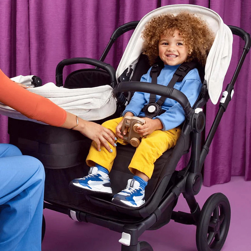 У вас и ваших детей всегда будет контакт друг с другом благодаря уникальному дизайну коляски. Вы сможете установить сиденья как лицом к себе или к окружающему миру, так и лицом друг к другу. И ваши прогулки станут еще веселее. При необходимости вы всегда сможете легко трансформировать коляску Bugaboo Donkey 5 из одноместной в двухместную — всего в 3 простых движения. Кроме того, вы можете присоединить к шасси подножку для второго ребенка для прогулок даже с 3 детьми одновременно.