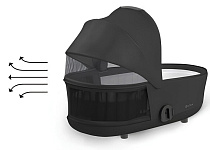 Cybex Mios III имеет несколько возможных комбинаций по сборке, в зависимости от возраста ребенка. Вы можете прикрепить спальный блок (люльку) Mios к раме и получить отличную коляску для новорожденных, которую смело можно использовать для прогулок и путешествий с ребенком в возрасте до 6 месяцев. Максимальный вес ребёнка в этой сборке предусматривается в 9 кг.