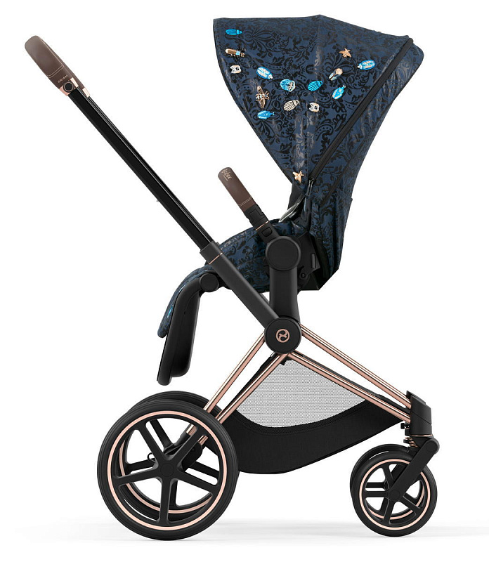 Cybex Priam IV 2 в 1 (Сайбекс Приам 4) является комплектом немецкой гибридной универсальной премиальной коляски, который удовлетворит все изысканные потребности с первых дней жизни вашего малыша до достижения им 4-летнего возраста. Данная модель коляски Priam IV имеет шасси цвета Rosegold (рама розовое золото, бампер и ручка в коричневом оттенке).