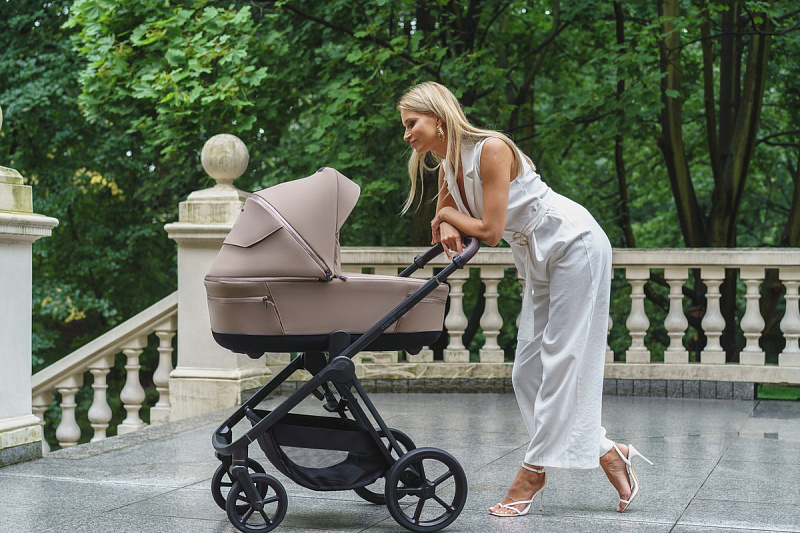 Внутри люльки премиальные мягкие материалы, очень приятные на ощупь. Их легко снять для стирки – просто расстегните молнию и готово! Плотный упругий матрасик из поролона поддерживает голову, шею и спинку новорождённого в правильном положении. При движении по сложным участкам можно установить специальный фиксатор люльки к шасси. Такая функция снижает люфт колыбели и она меньше качается на кочках и ямках. Люлька легко снимается с шасси в одно простое движение. Нажмите рычаг на дне и потяните за ручку на капюшоне. Колыбель можно переносить по квартире, используя как кроватку для дневного сна. На дне есть ножки, поэтому она не испачкается, если поставить ее на пол.