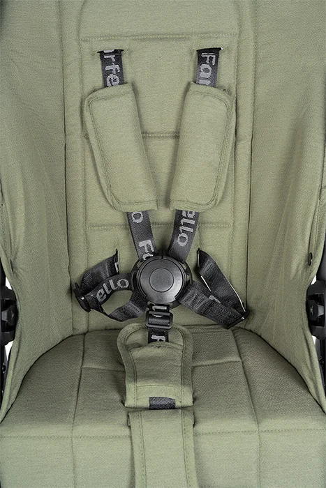 Прогулочный блок (с 7 до 36 мес): 3 положения регулировки угла наклона спинки при помощи кнопки. Для безопасности предусмотрены пятиточечные ремни безопасности, разделитель для ног и съемный бампер. Прогулочный блок имеет глубокий трехсекционный капюшон со скрытым окошком для вентиляции.