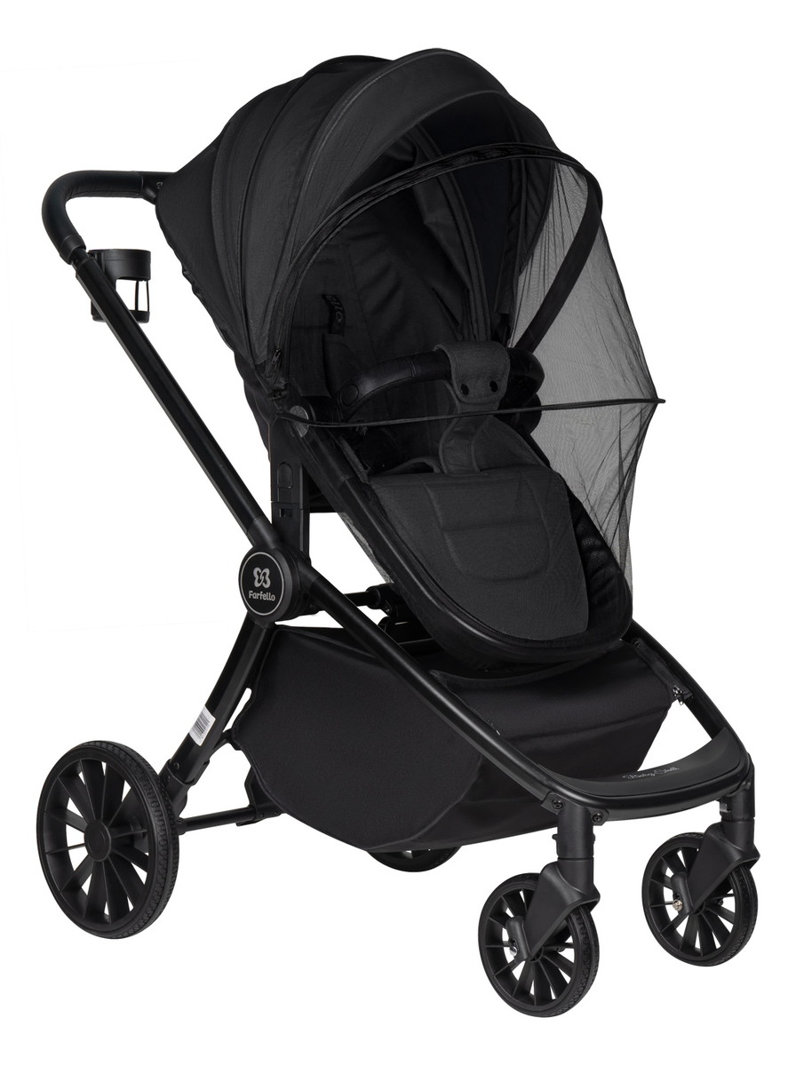 На люльке и прогулочном блоке, антимоскитная сетка встроена в капор. При открытии молнии (секретный карман), расправляется полноценная антимоскитная сетка.