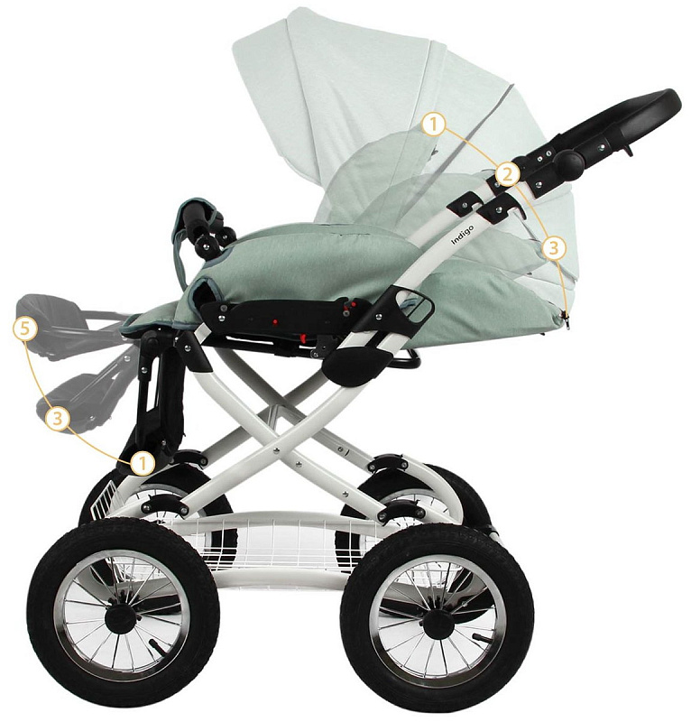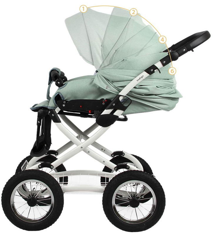 Материал чехла. Ткань с водоотталкивающим покрытием защитит от дождя и снега и облегчит ухода за коляской.