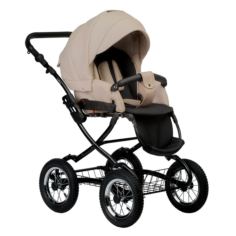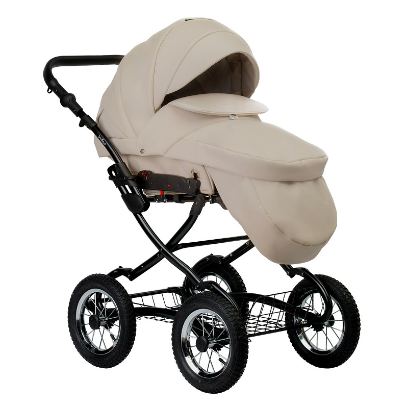 - Рама коляски выполнена в классическом стиле, что обеспечивает ей устойчивость и прочность.