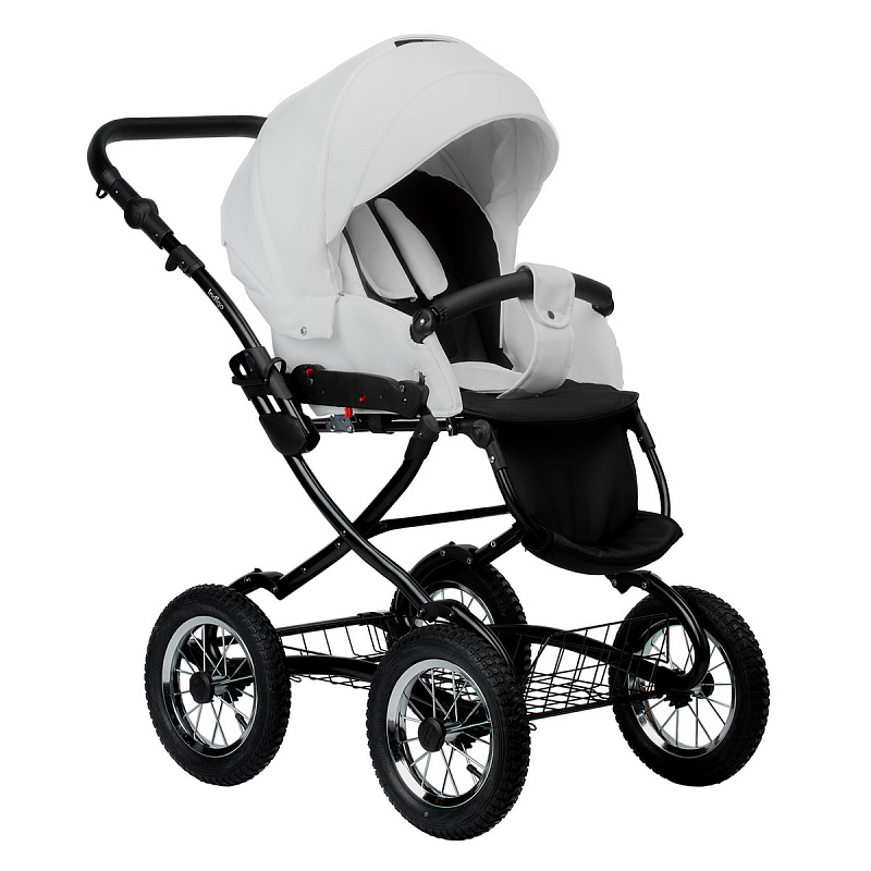 - Рама коляски выполнена в классическом стиле, что обеспечивает ей устойчивость и прочность.