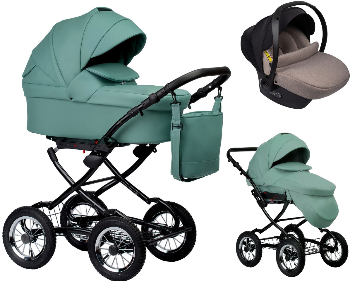 Детская коляска Indigo Barbara Eco Classic 3 в 1 с автокреслом Avionaut Cosmo Beige Be01 шалфей кожа
