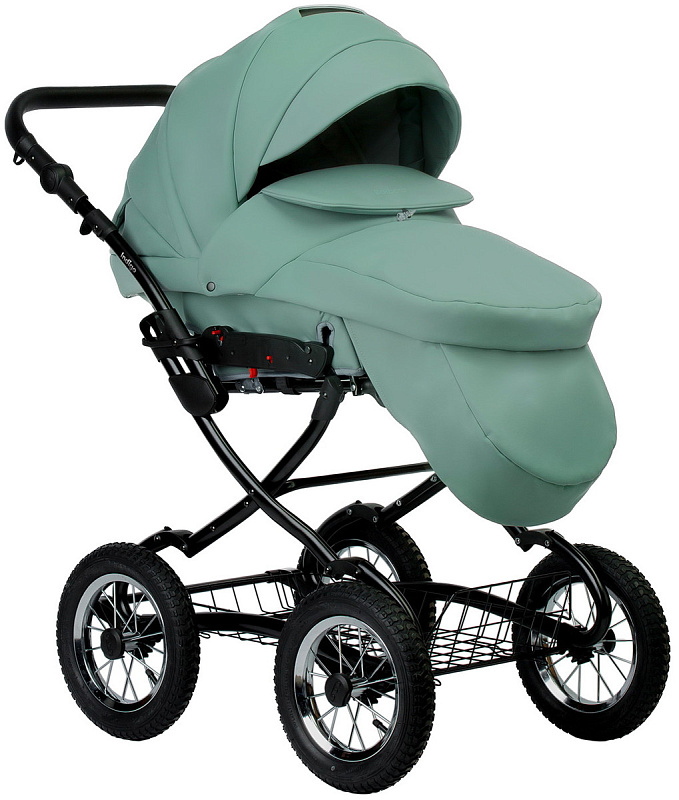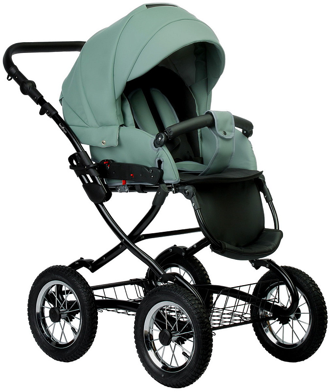 Рама коляски выполнена в классическом стиле, что обеспечивает ей устойчивость и прочность.