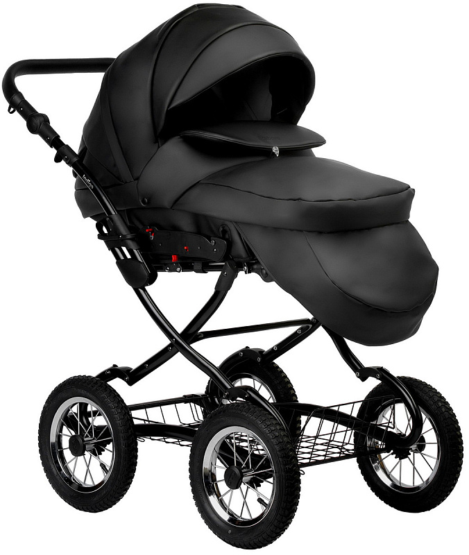 Рама коляски выполнена в классическом стиле, что обеспечивает ей устойчивость и прочность.