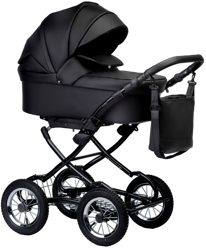 Детская коляска Indigo Barbara Eco Classic 3 в 1 с автокреслом Avionaut Cosmo Grey Be03 черная кожа