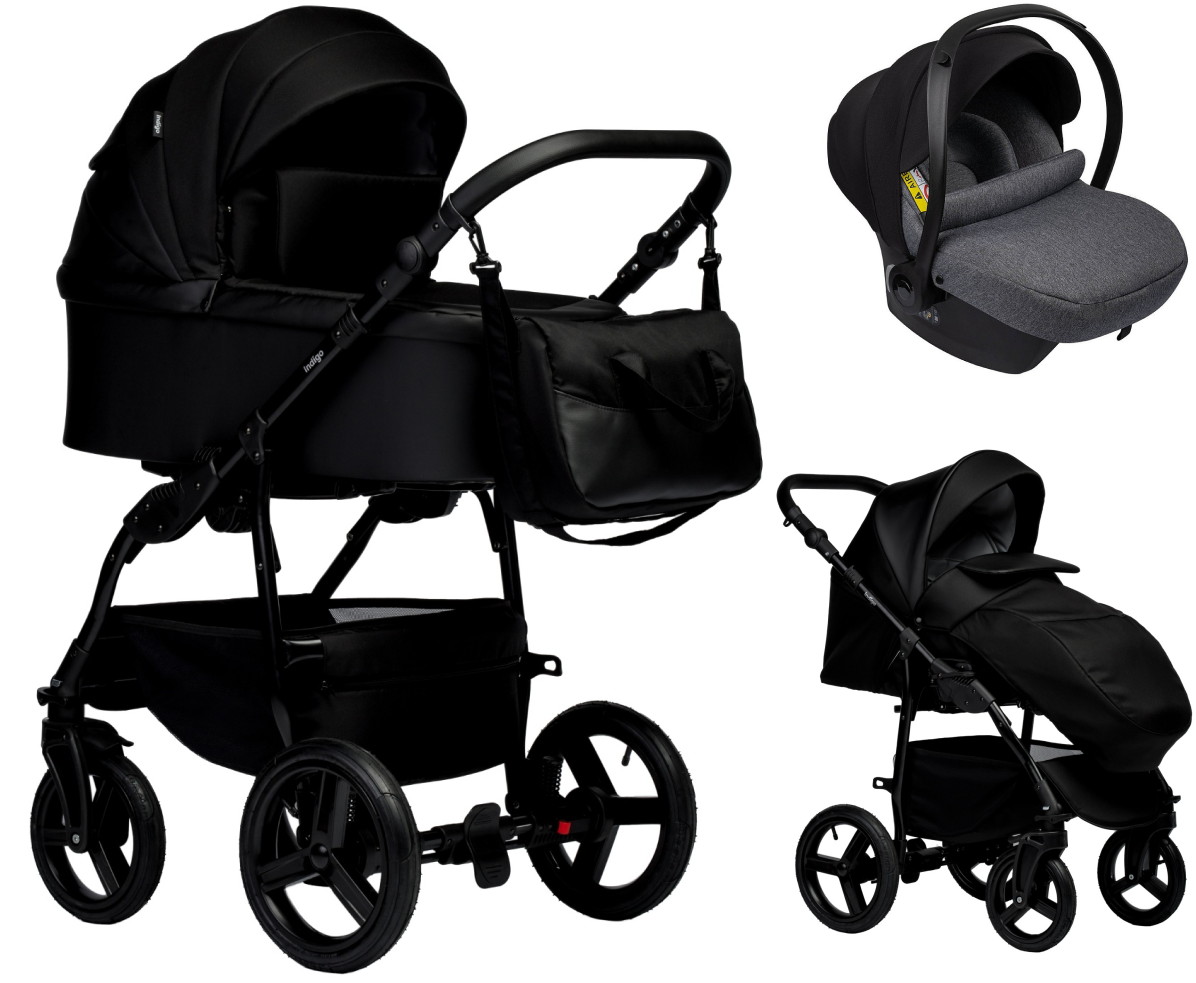 Детская коляска Indigo Impulse Eco 3 в 1 с автокреслом Avionaut Cosmo Grey Ie08 черная кожа/черный