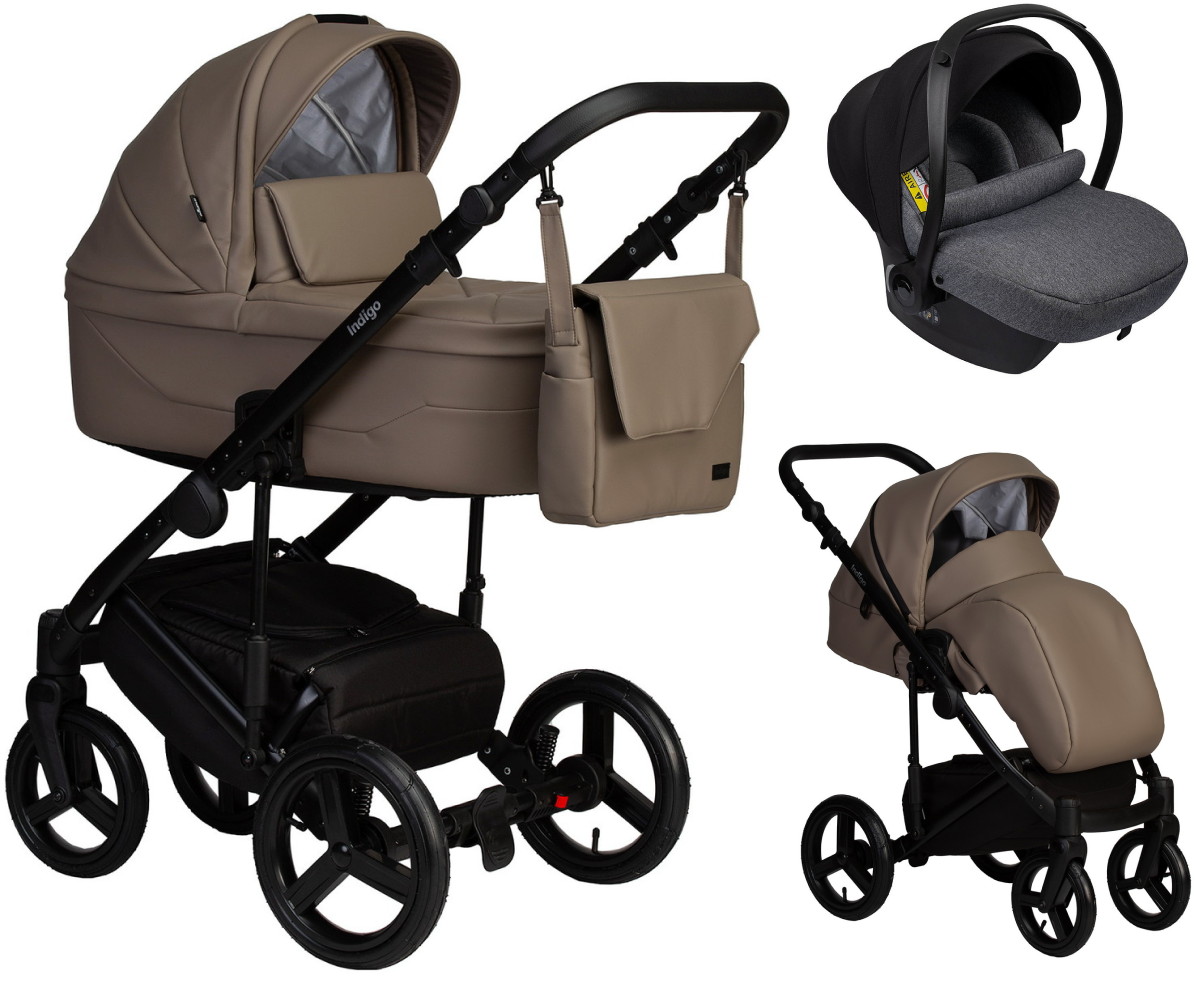 Детская коляска Indigo Lamar 3 в 1 с автокреслом Avionaut Cosmo Grey La04 т.бежевая кожа