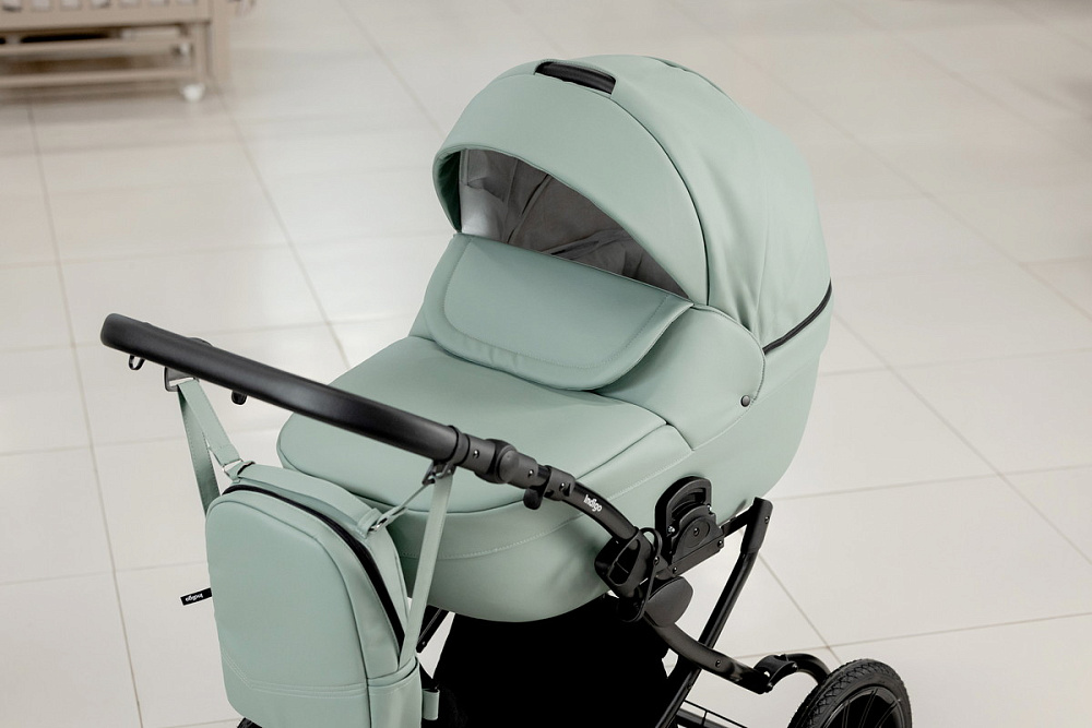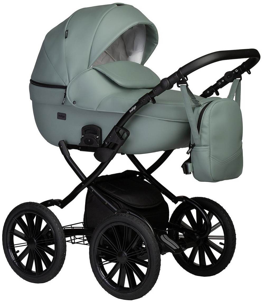 Детская коляска Indigo Mio Eco Plus 14 3 в 1 с автокреслом Avionaut Cosmo Black 03 шалфей кожа