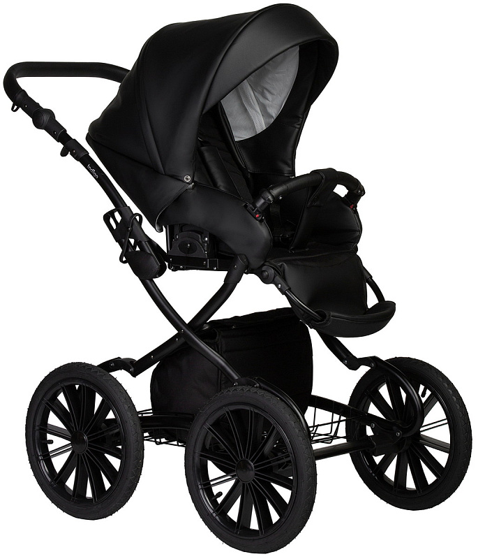 Регулируемая кожаная ручка легко подстраивается под рост родителя.