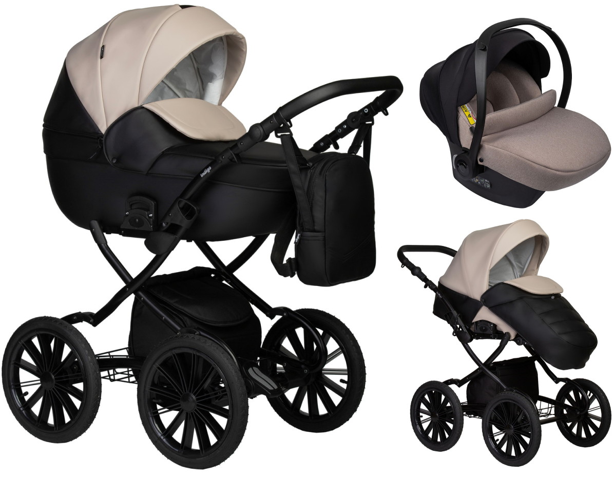 Детская коляска Indigo Mio Eco Plus 14 3 в 1 с автокреслом Avionaut Cosmo Beige 04 черная кожа+св.бежевая кожа