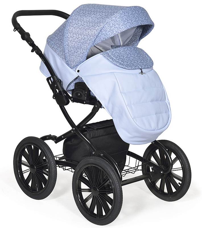 Детская коляска Indigo Mio Plus 14 2 в 1 Mi 05 св.голубая кожа+голубой узор