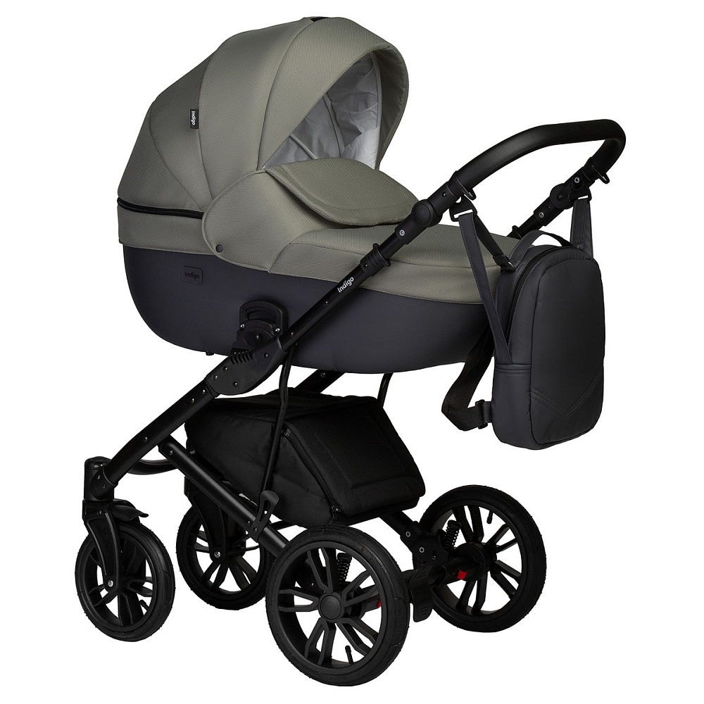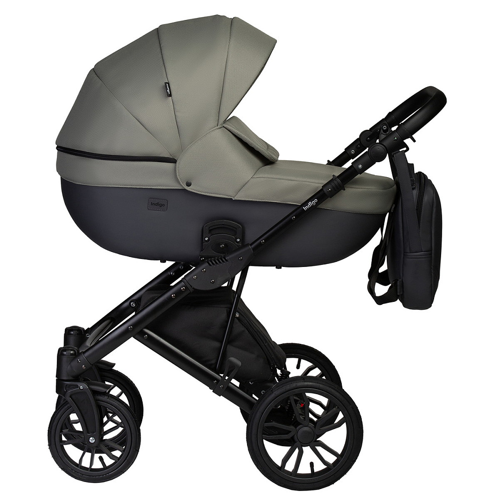 Детская коляска Indigo Mio S 2 в 1 05 т.серая кожа+зеленый