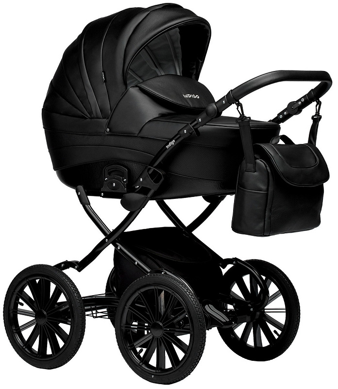 Детская коляска Indigo Special Plus 3 в 1 с автокреслом Avionaut Cosmo Black Is03 черная кожа