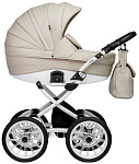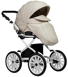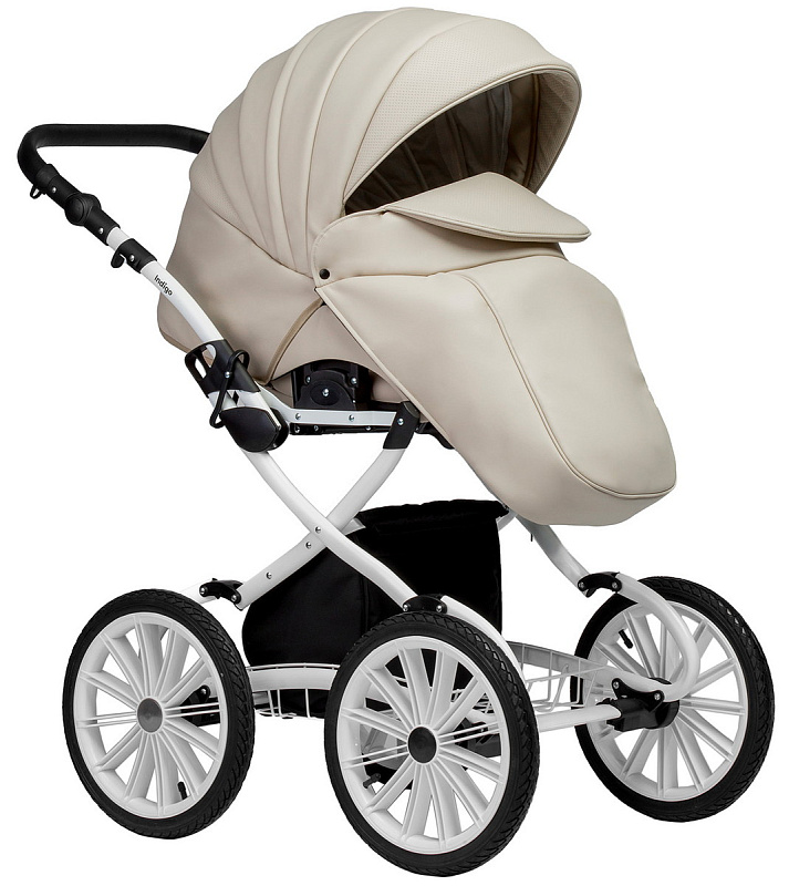 Люлька у коляски пластиковая литая, она надежно защитит маленького пассажира. Снаружи коляска полностью обшита экокожей, а внутренний чехол выполнен из 100% хлопка - гипоаллергенного и приятного для младенца. Крепится он на липучки и легко снимается, если нуждается в стирке. Внутри люльки пришиты удобные кармашки для необходимых мелочей, которые в самый неподходящий момент обычно прячутся в недрах маминой сумки. Подголовник регулируется снаружи - можно менять положение по мере необходимости без какого-либо дискомфорта для малыша. Для холодной погоды на теплой накидке предусмотрен ветрозащитный отворот, который фиксируется магнитной застежкой. В сочетании с большим козырьком он надежно скроет маленькое сокровище от нежелательных любопытных взглядов. В жаркую погоду для вентиляции открывается секция на молнии из сетки. Дно люльки спроектировано таким образом, что, снятая с рамы, она безопасно укачивается на ровной поверхности и может служить полноценной колыбелью.