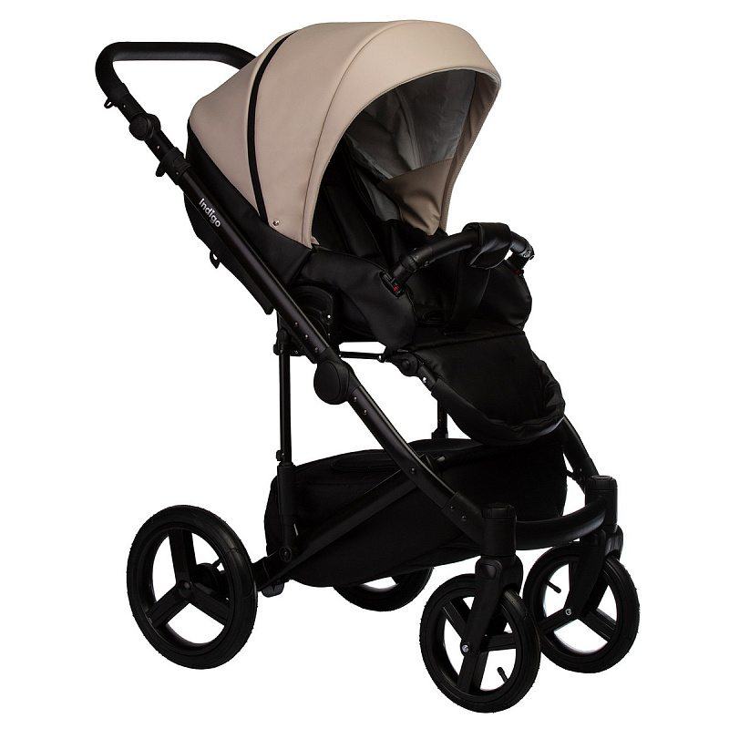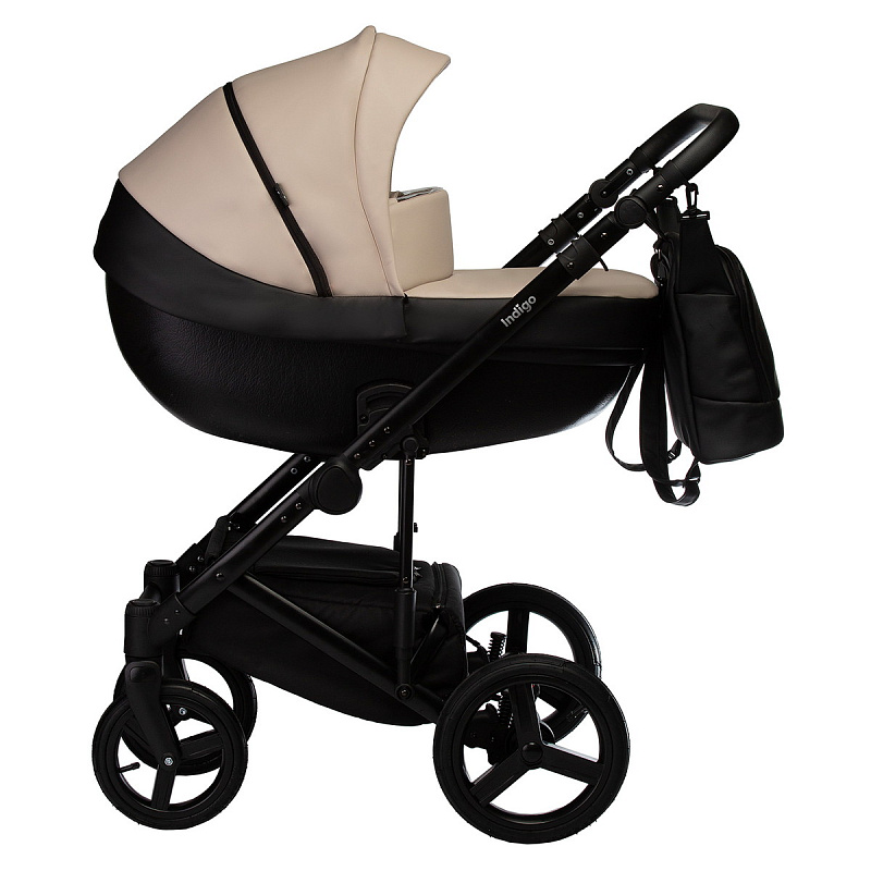 Детская коляска Indigo Tour Eco 2 в 1 Te01 черная кожа+бежевая кожа