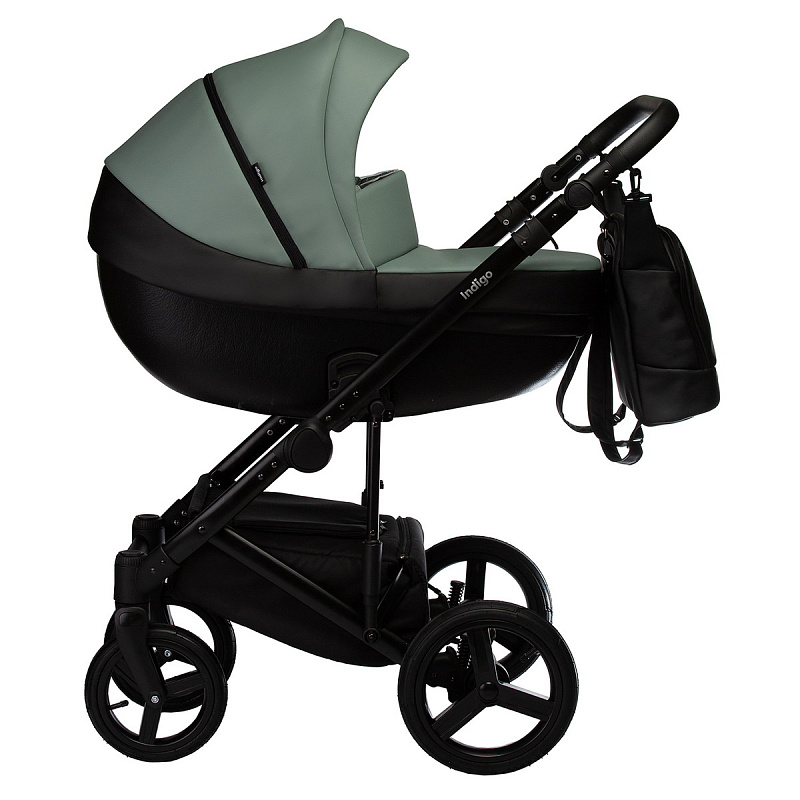 Детская коляска Indigo Tour Eco 2 в 1 Te03 черная кожа+шалфей кожа