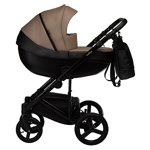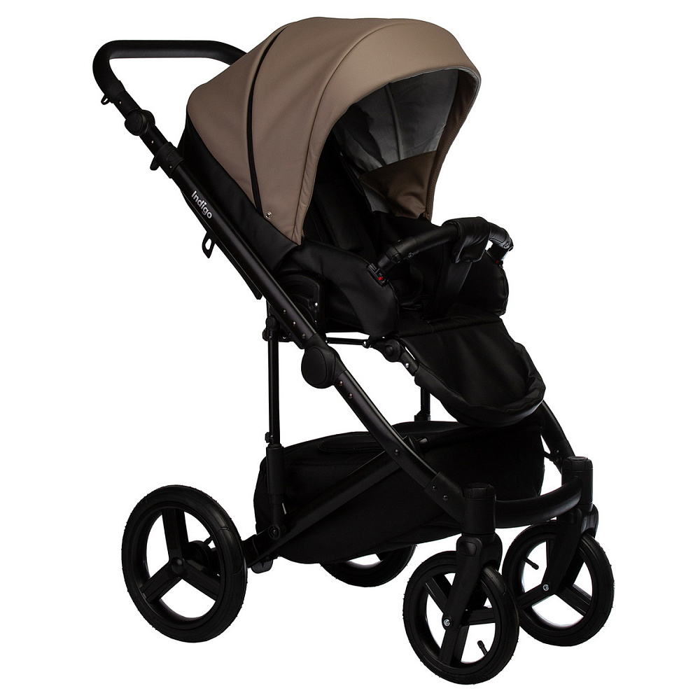Детская коляска Indigo Tour Eco 2 в 1 Te04 черная кожа+т.бежевая кожа