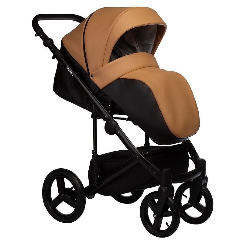 Детская коляска Indigo Tour Eco 2 в 1 Te05 черная кожа+рыжая кожа