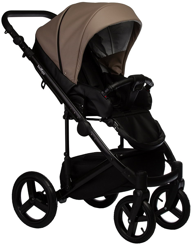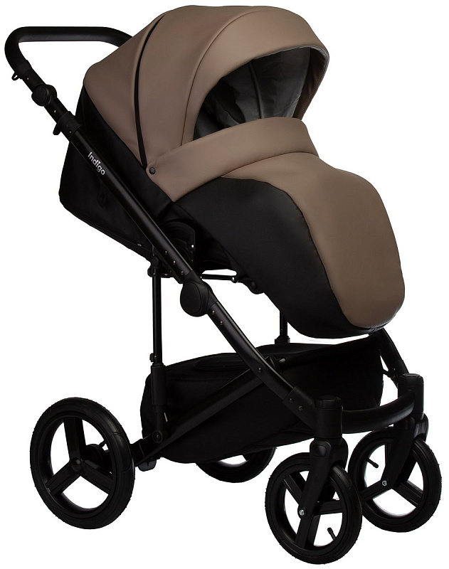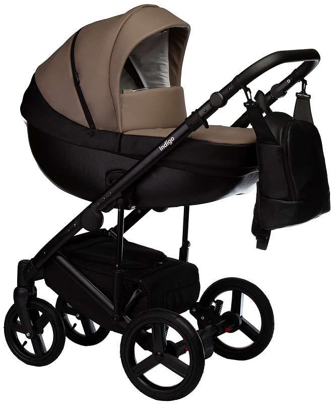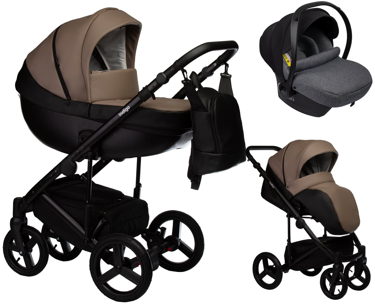 Детская коляска Indigo Tour Eco 3 в 1 с автокреслом Avionaut Cosmo Grey Te04 черная кожа+т.бежевая кожа