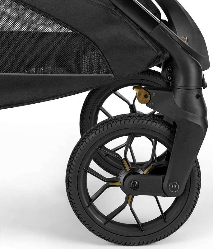 Ширина шасси всего 55 см. Узкое шасси с телескопической ручкой пройдет в самый узкий дверной проем и маленький лифт. Мощные колеса с протектором (передние 214 мм, задние 305 мм) легко преодолеют любые препятствия. Уникальная структура резиновых шин состоит из двух слоев, ведет к снижению передаваемых на люльку и на ручку коляски вибраций и нагрузок, вызванных неровностями грунта.