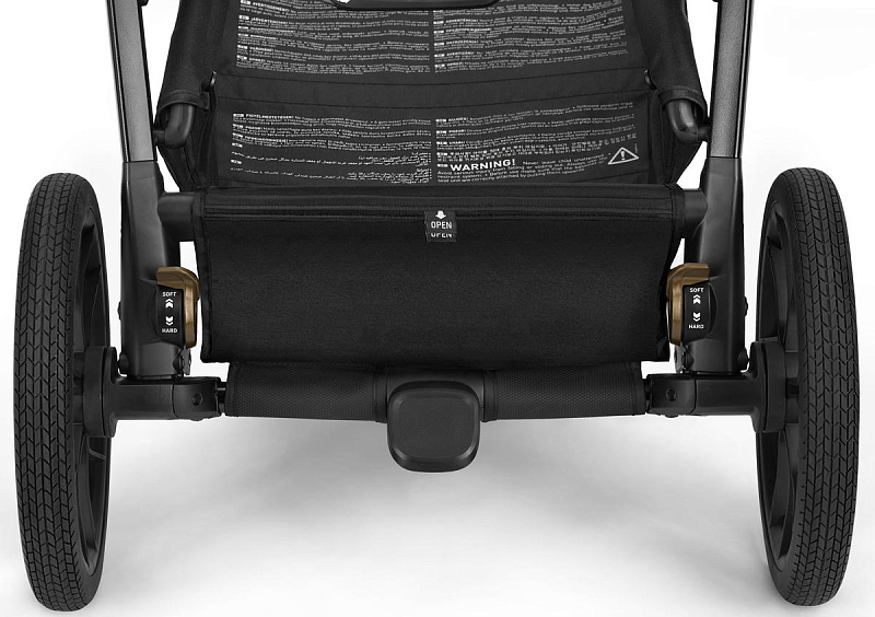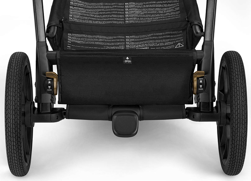 Коляска оснащена Adaptive Cruise System –системой настройки амортизации каждого колеса в зависимости от типа дорожного покрытия и возраста ребенка. Коляска легко и плавно передвигается по любой поверхности. Эргономичный фиксатор HARD/SOFT на каждом колесе для быстрого переключения мягкости амортизации.
