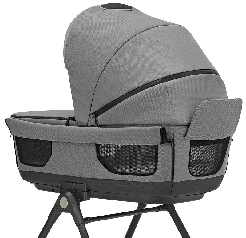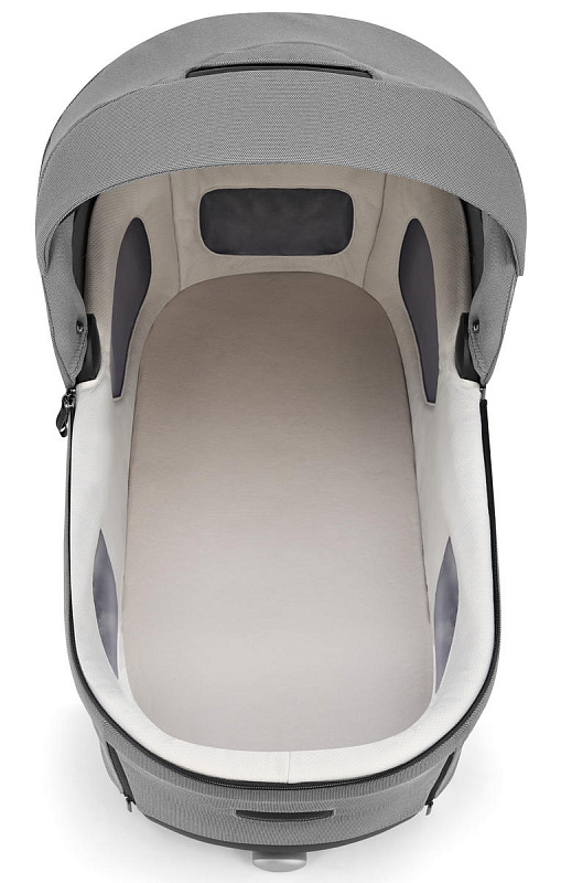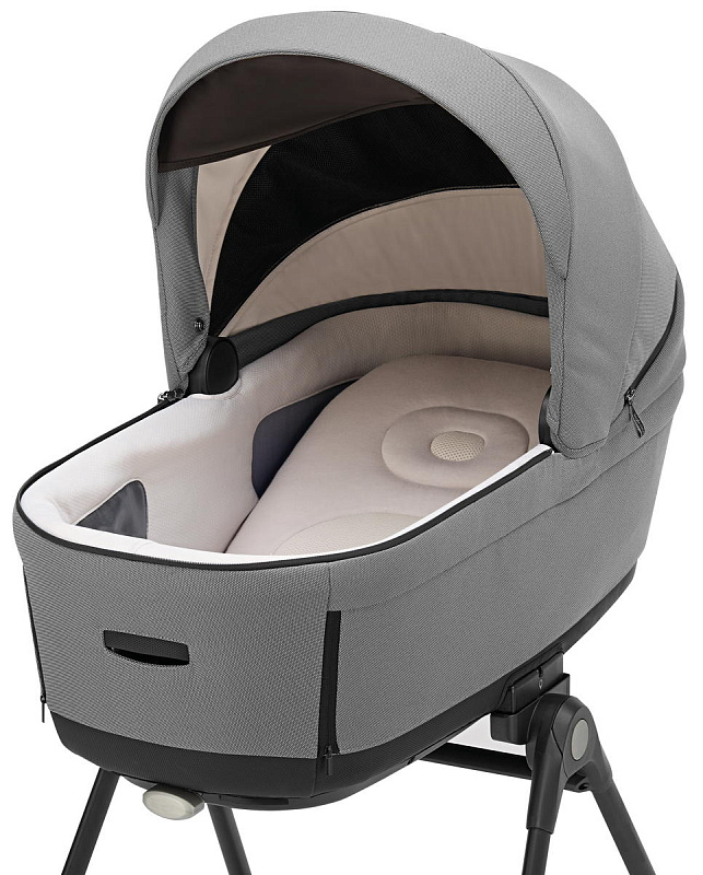 Высокие борта из полипропилена обеспечат климат-контроль. Настраиваемая вентиляция дна и изголовья, вентиляционная секция и защита от солнца и непогоды для комфорта в любое время года. Накидка на двух молниях для удобного доступа к малышу.