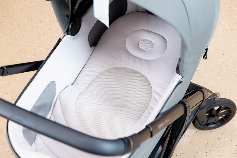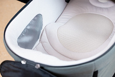 Матрасик-вкладыш из мягкой ткани джерси с поверхностью из дышащей сетки дарит новорожденному эффект объятий в первые месяцы жизни