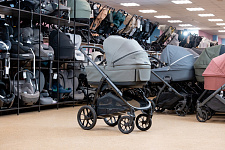 Ширина шасси всего 55 см. Узкое шасси с телескопической ручкой пройдет в самый узкий дверной проем и маленький лифт. Мощные колеса с протектором (передние 214 мм, задние 305 мм) легко преодолеют любые препятствия. Уникальная структура резиновых шин состоит из двух слоев, ведет к снижению передаваемых на люльку и на ручку коляски вибраций и нагрузок, вызванных неровностями грунта.