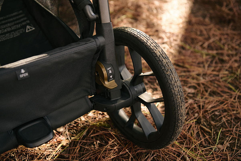 Коляска оснащена Adaptive Cruise System –системой настройки амортизации каждого колеса в зависимости от типа дорожного покрытия и возраста ребенка. Коляска легко и плавно передвигается по любой поверхности. Эргономичный фиксатор HARD/SOFT на каждом колесе для быстрого переключения мягкости амортизации.