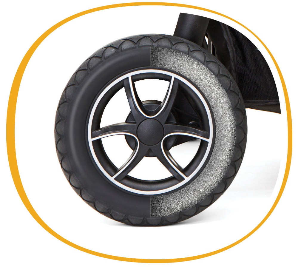 - Классический ножной тормоз уверенно блокирует или разрешает движение коляске однократным нажатием на педаль, при этом обувь не царапается