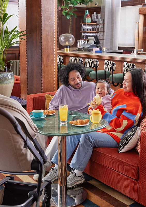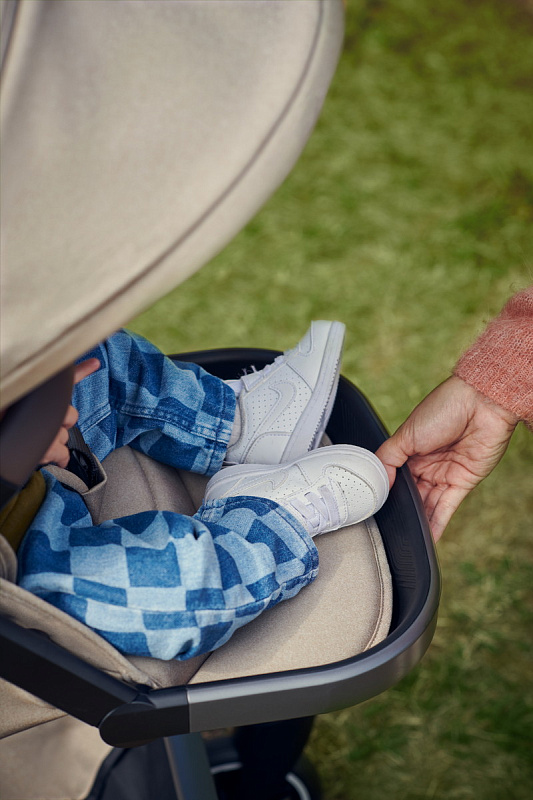 - Высокая посадка дает возможность использовать коляску вместо стульчика в кафе.
