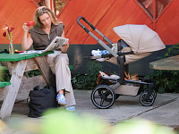 - Высокая посадка дает возможность использовать коляску вместо стульчика в кафе.