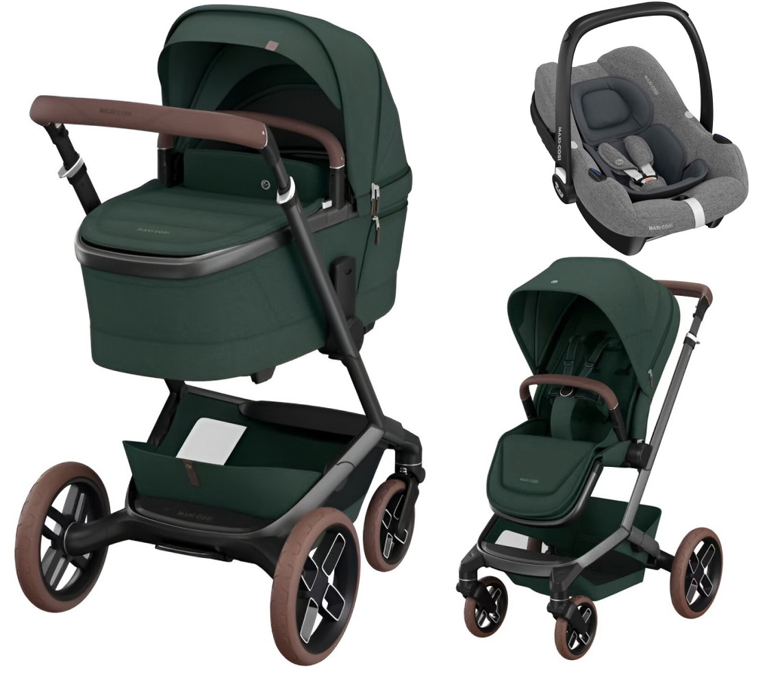 Детская коляска Maxi-Cosi Fame 3 в 1 с автокреслом CabrioFix Select grey Twillic Green/зеленый
