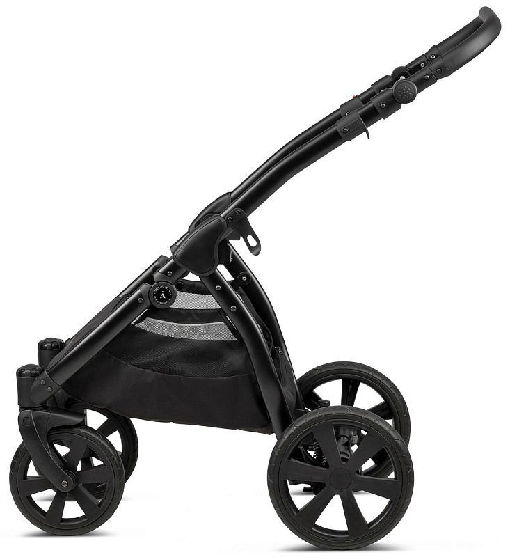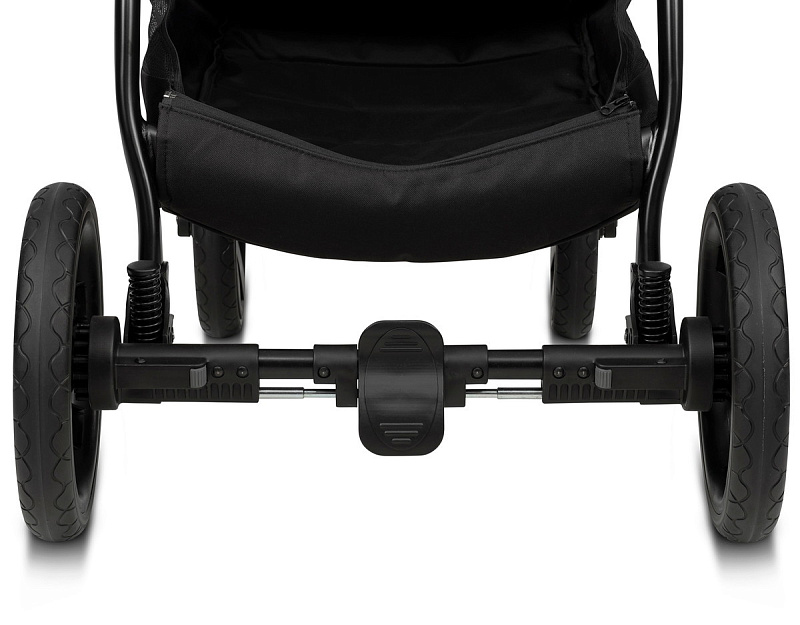 - Прочная рама установлена на большие колеса с амортизаторами, которые делают систему проходимой и мягкой в езде даже по бездорожью.