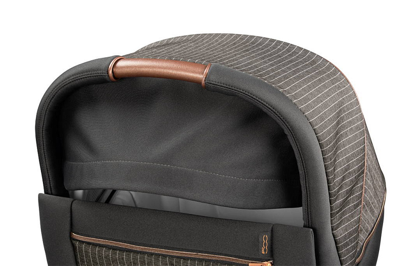 - Ручка из экокожи для переноски. Благодаря специальной системе складывания вы сможете без труда опустить капюшон даже с малышом на руках.