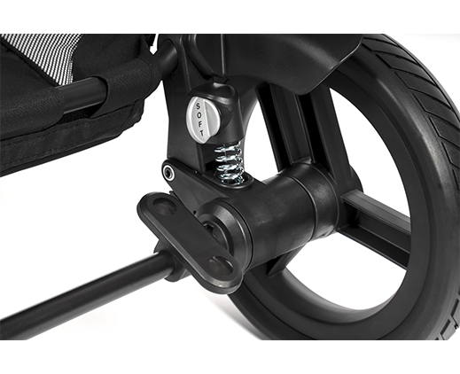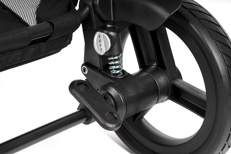 - Большие колеса 28 см с пружинной регулируемой подвеской.