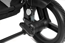 Большие колеса 28 см с пружинной регулируемой подвеской для плавного преодоления неровностей. Передние колеса фиксируются в прямом положении. Светоотражающие вставки обеспечат дополнительную безопасность во время вечерних прогулок.