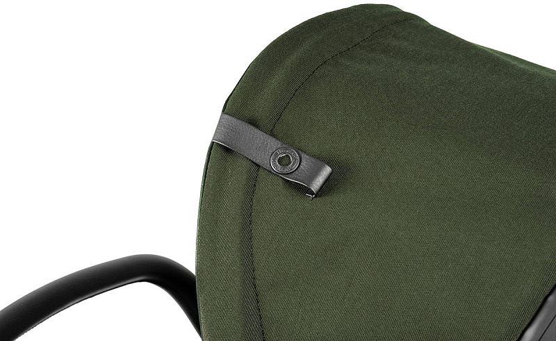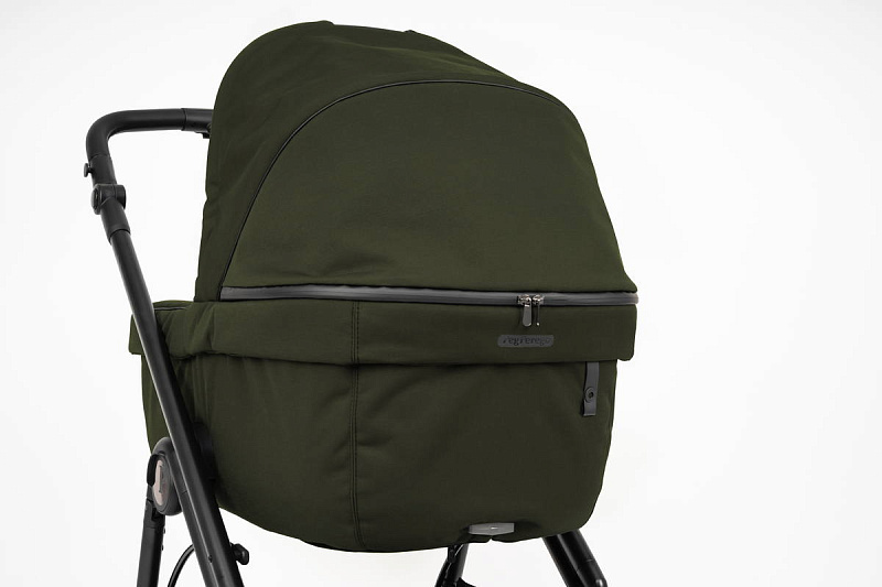 - Ручка из экокожи для переноски. Благодаря специальной системе складывания вы сможете без труда опустить капюшон даже с малышом на руках.