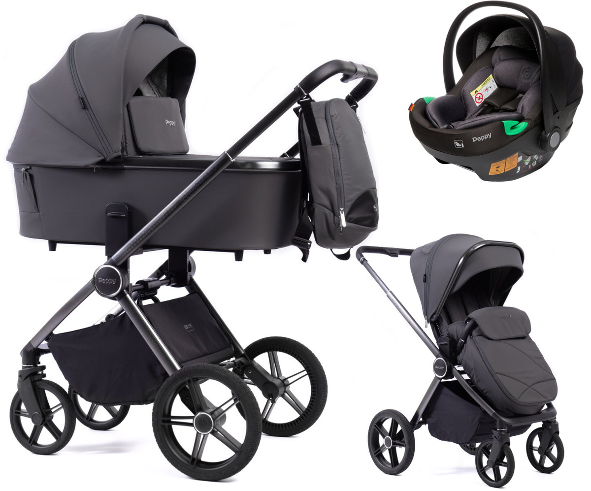 Детская коляска Peppy Monaco 3 в 1 с автокреслом First Antrazit (графитовый), рама серая