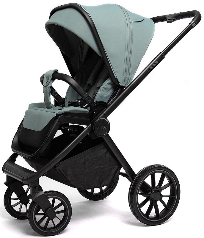 Детская коляска Peppy Monaco 3 в 1 с автокреслом First Mint (мятный), рама черная
