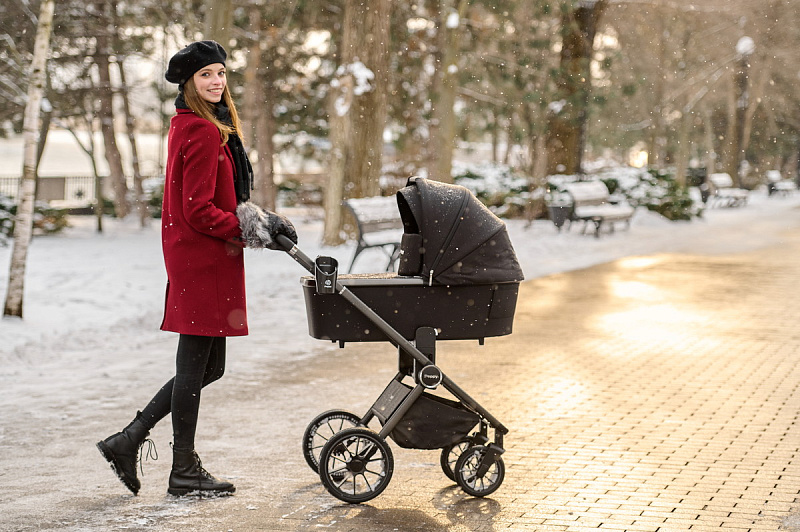 На прохладную погоду для прогулочного блока есть матрасик, который пристегивается к накидке, что сохраняет тепло в ногах ребенка.