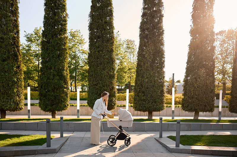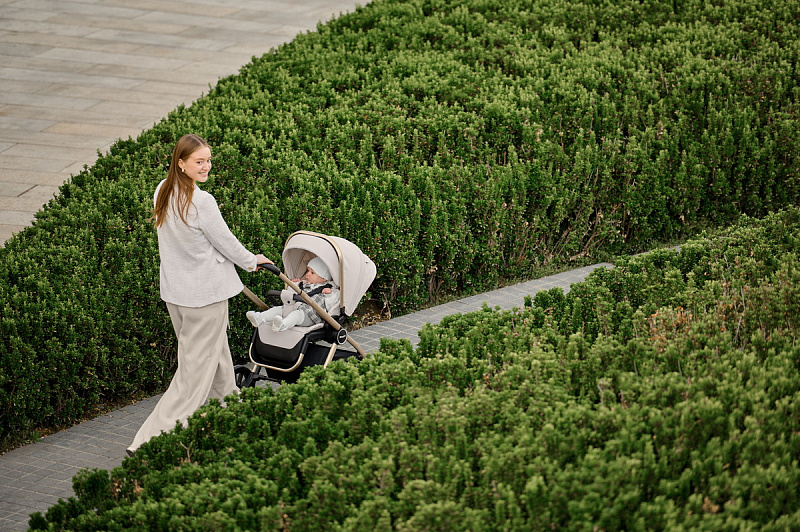 Спинку прогулочного блока можно зафиксировать в нескольких положениях от положения сидя до лежа (4 уровня регулировки)