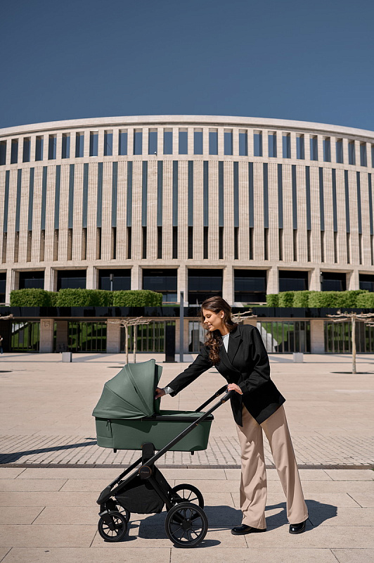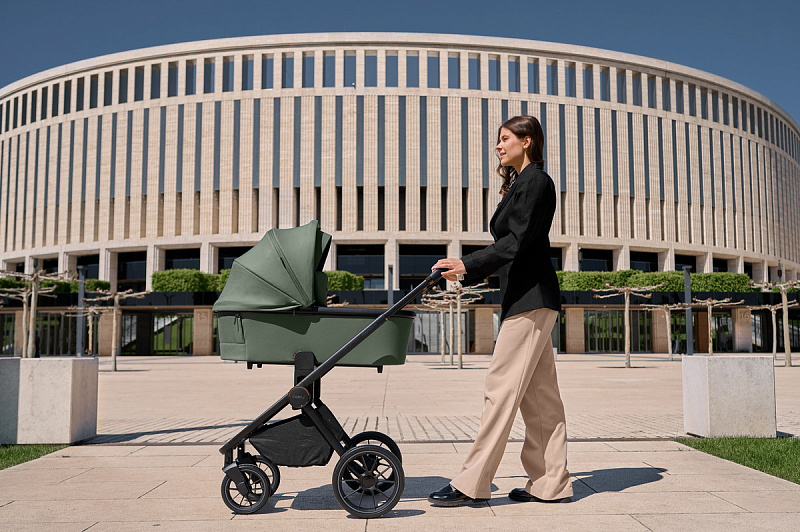 Простая установка люльки на шасси - широкие адаптеры легко и плавно фиксируются на раме. А для снятия её достаточно нажать одну кнопку с эффектом памяти и потянуть ручку вверх.