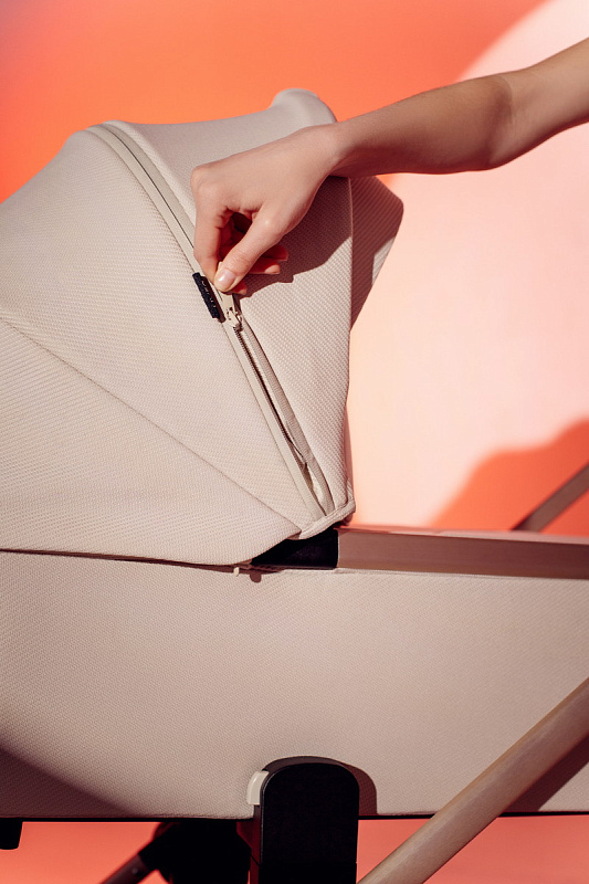 Для лучшей циркуляции воздуха в жаркие летние дни в капоре люльки и у изголовья есть москитная сетка, спрятанная под молнией